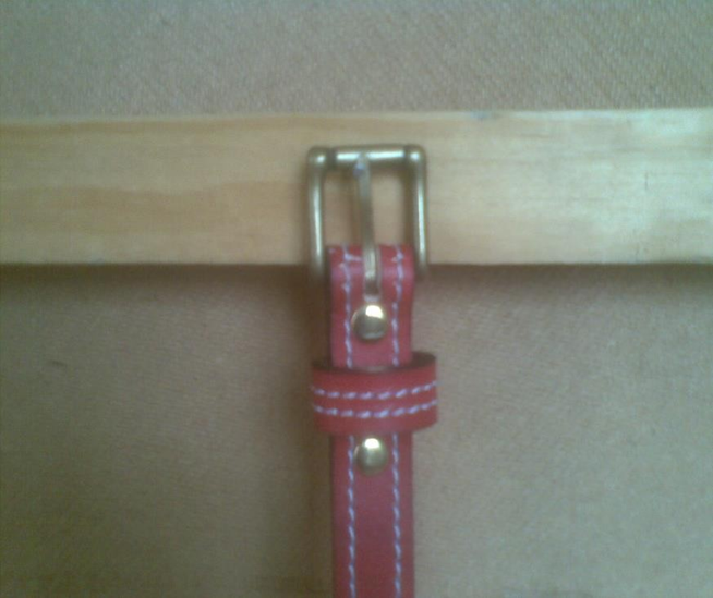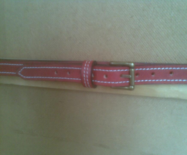 Red Belt With White Out-Stitching and Brass-Plated Buckle. 20mm Width.