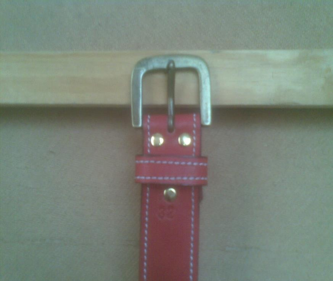 Red Belt with White Out-Stitching & Brass Buckle. 37mm Width.